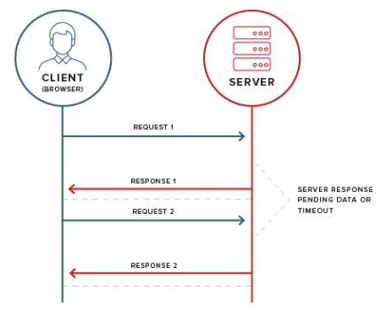 - server에 변화가 없어도 client는 계속 요청을 보냄 => 불필요한 네트워크 트래픽 발생